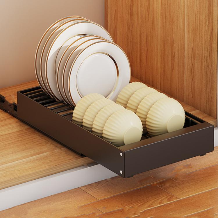 Pull-out Drainable Bowl Dish Storage Rack Cabinet Organizer Slide-out Drawer(Black)