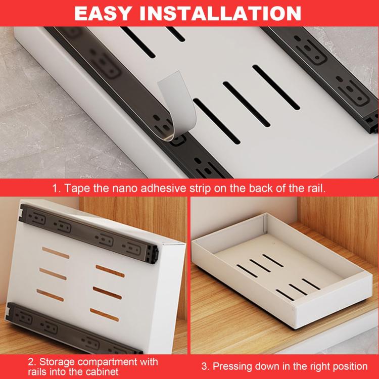 5. Easy and quick installation, no drilling and nailing required, just manually stick the drawer slides to the cabinet.