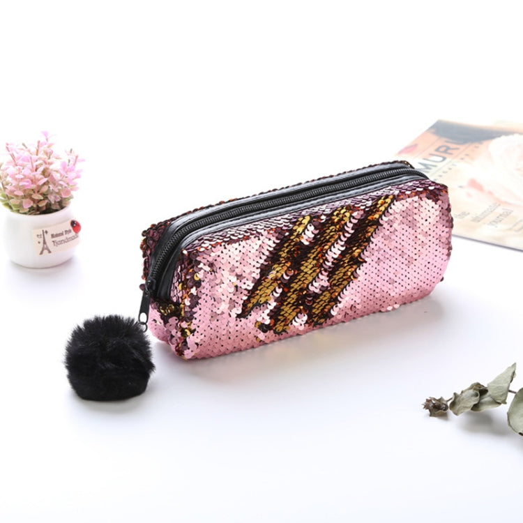 Reversible Sequin Pencil Case for Girls School Supplies Super Big Stationery Gift Magic Makeup Bag(Pink+Glod)