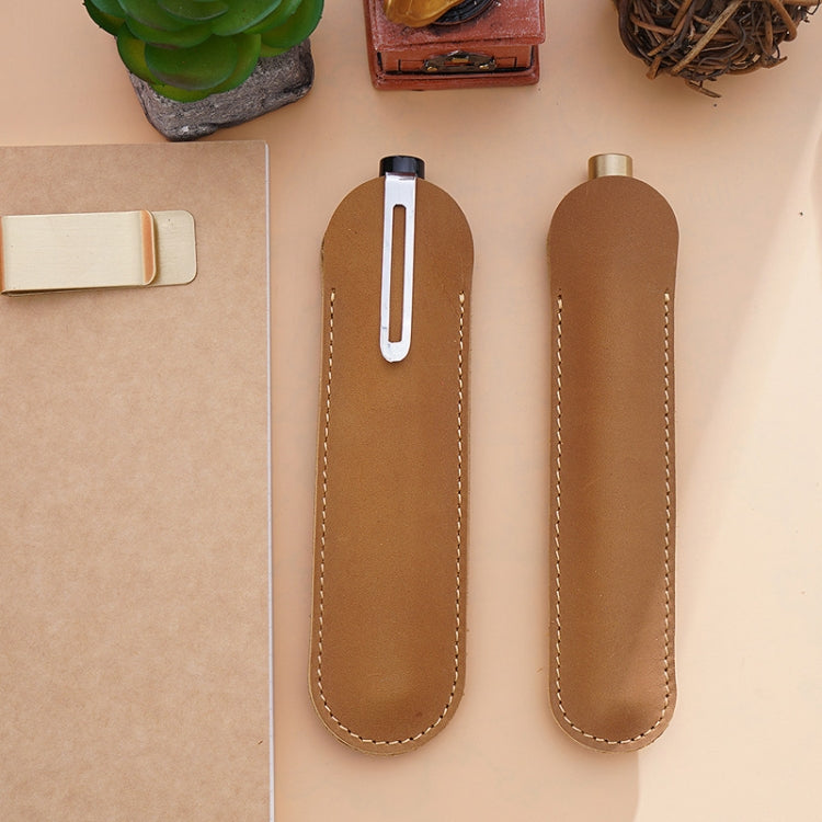 Single Pen Bag Handmade Line Pen Holder, Size: Large(Camel)