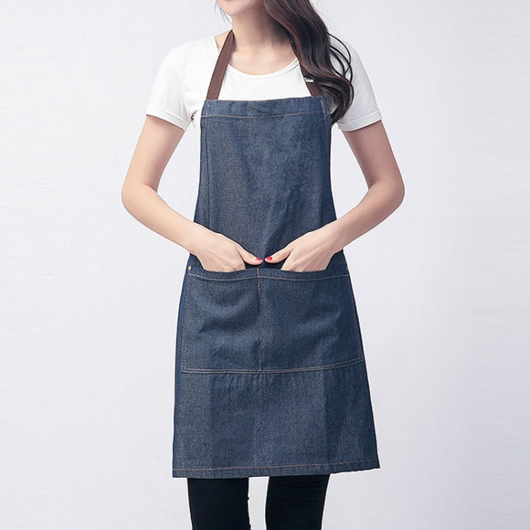 Sleeveless Denim Apron Halter Blue Denim Kitchen Overalls, Size:71x65cm(Blue)