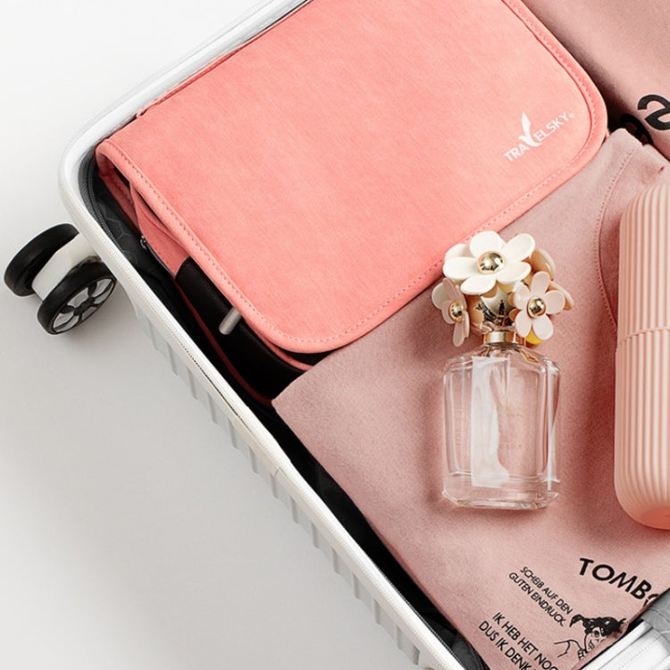 Travelsky Travel Storage Waterproof Pu Cosmetic Bag Multifunctional Folding Large Capacity Toiletry Bag(Ebony)