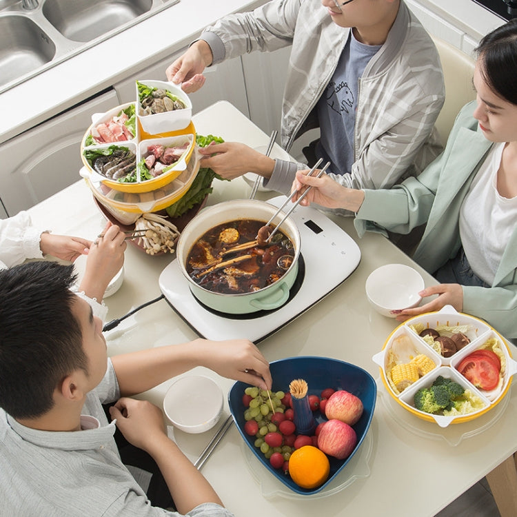 Vegetable Washing Draining Basket Split-Grid Rotating Multi-Layer Hot Pot Platter Tray+Drain Basket (Pink)