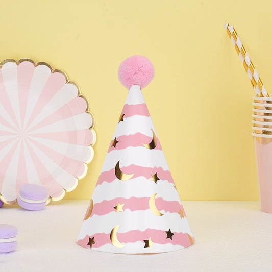 20 PCS Cute Children Bronzing Birthday Hats Cake Baking Decoration Party Hats Pink Ripple