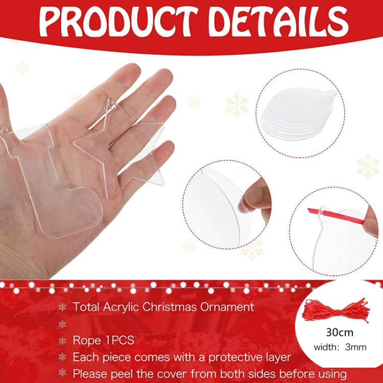 10pcs Clear Acrylic Christmas Decoration Hangers DIY Blank Xmas Tree Ornament With Rope, Style: Hat