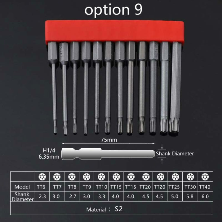 12 PCS / Set Screwdriver Bit With Magnetic S2 Alloy Steel Electric Screwdriver, Specification:9