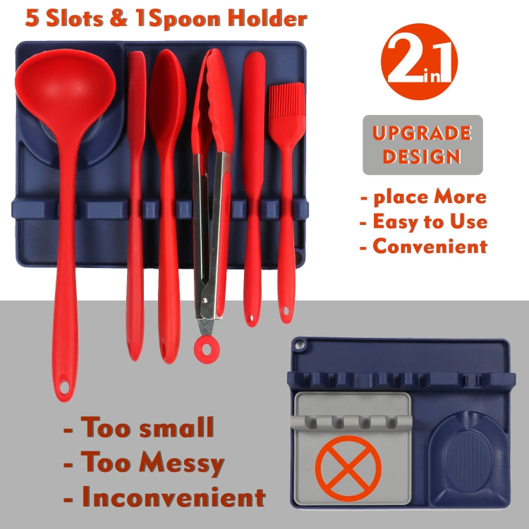 2 in 1 Kitchen Silicone Spoon Holder Shelf Medium (Blue)