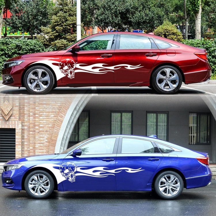2 PCS/Set D-964 Skull Flame Pattern Car Modified Decorative Sticker(White)