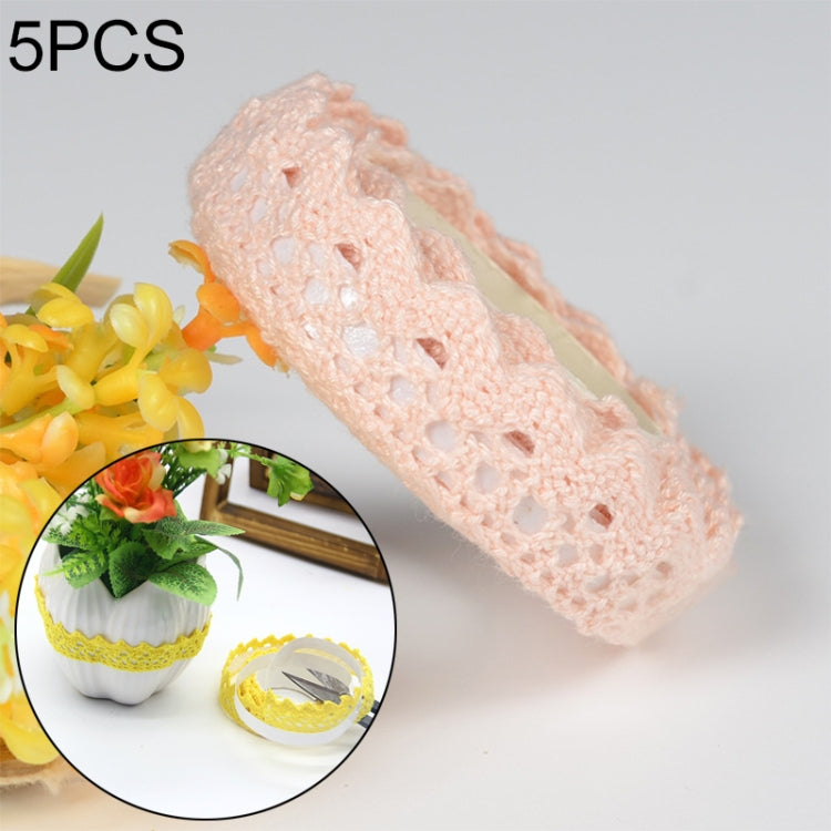 5 PCS Cotton Lace Fabric White Crochet Lace Roll Ribbon Knit Adhesive Tape Sticker Craft Decoration Stationery Supplies(Light Pink)