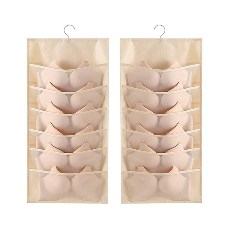 6+6 Grids Underwear Storage Bag Non-woven Double-sided Hanging Storage Bag(Beige)