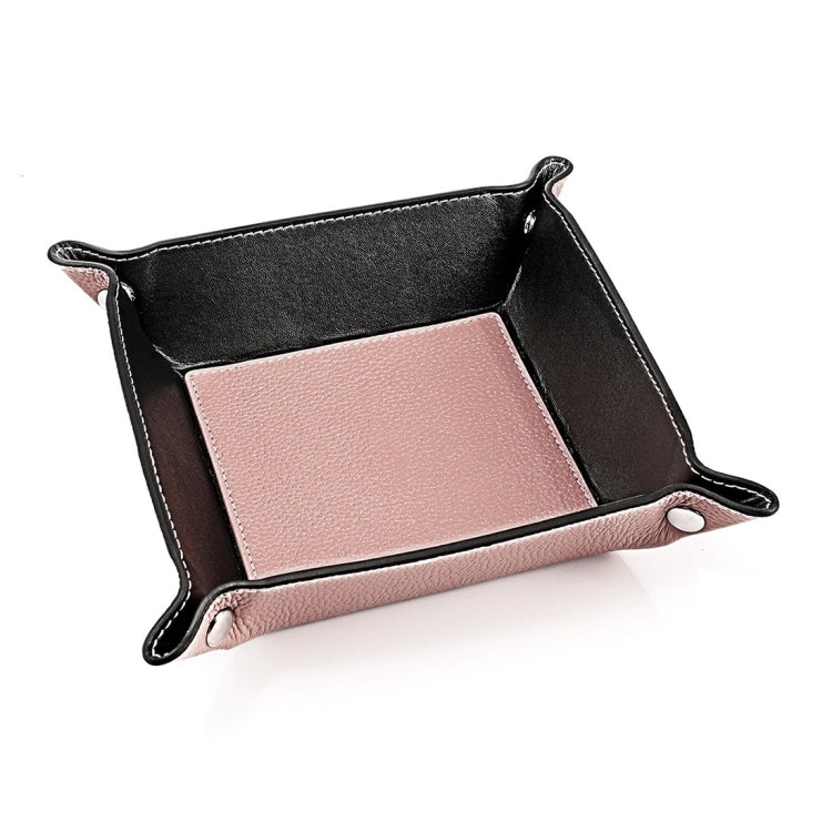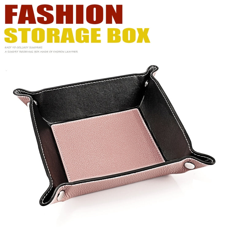 7001 Leather Desktop Square Storage Box Household Life Oddments Tray(Rose Pink)