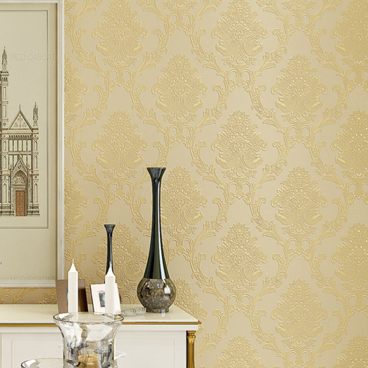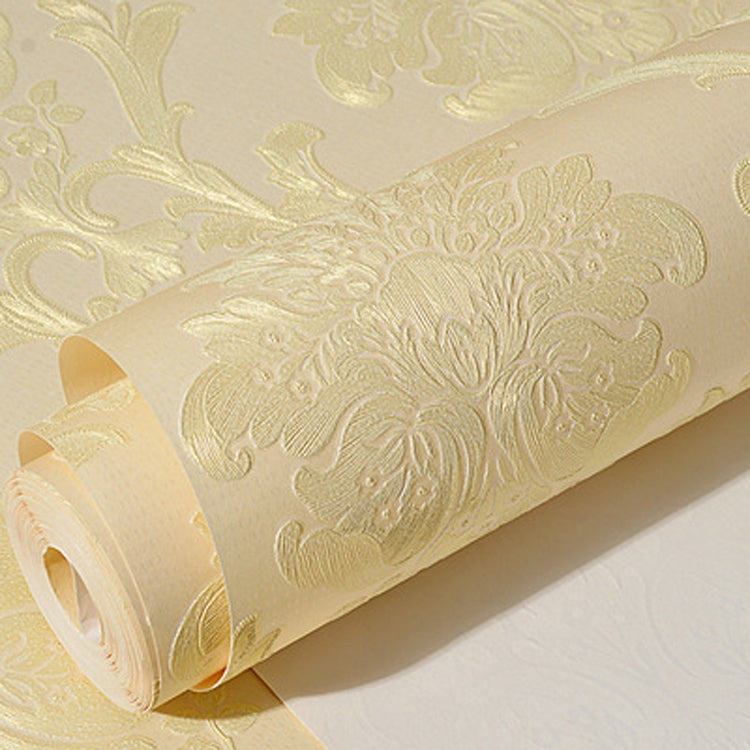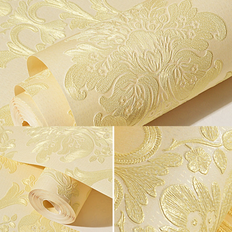 Bedroom Living Room Classic Damascus 3D Precision Pressed Non-Woven Fabric Self-Adhesive Wallpaper, Specification: 0.53 x 3 Meters(JA205 Yellow)