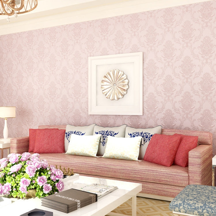 Bedroom Living Room Classic Damascus 3D Precision Pressed Non-Woven Fabric Self-Adhesive Wallpaper, Specification: 0.53 x 3 Meters(JA206 Pink)