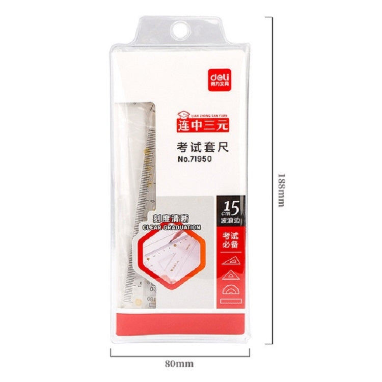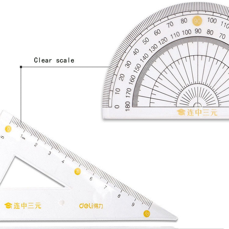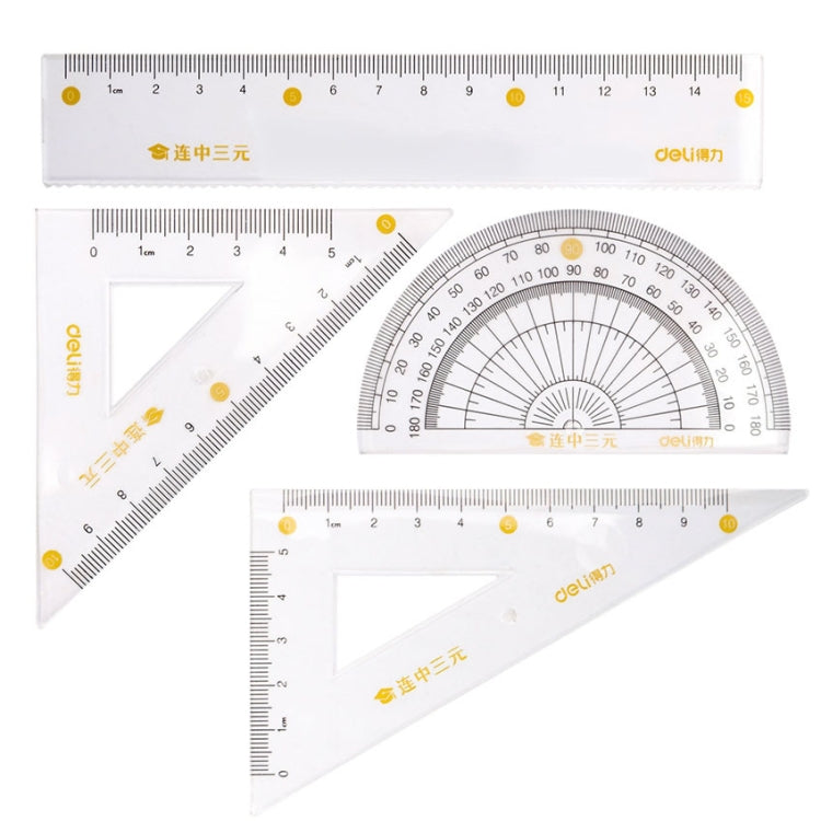 Deli 4 in 1 Student Exam Ruler Four-piece Set Containing Ruler Triangle Protractor