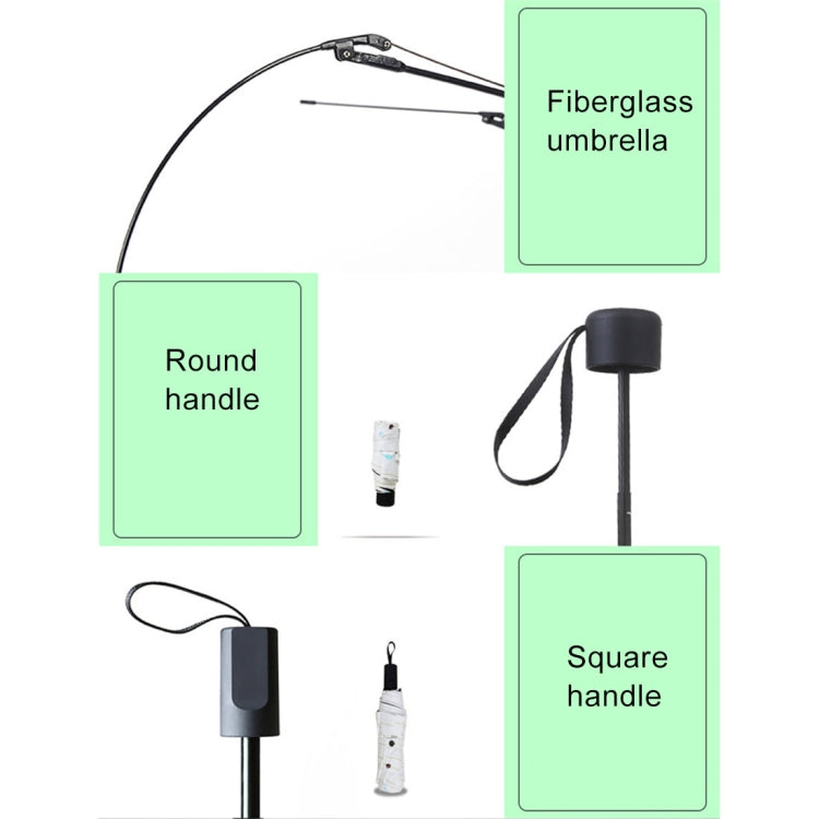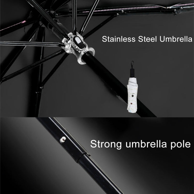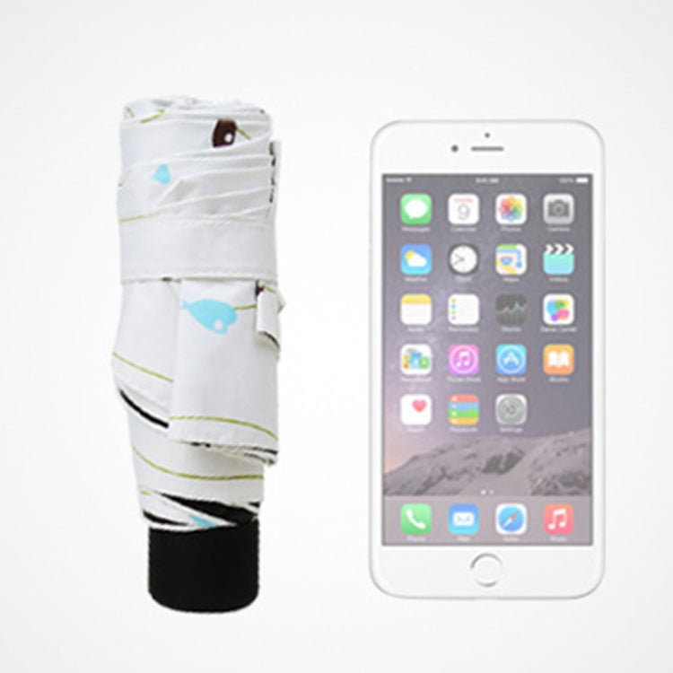 Five Folding Ultralight Umbrella, Women Waterproof Anti-UV (White Stripe Pattern)