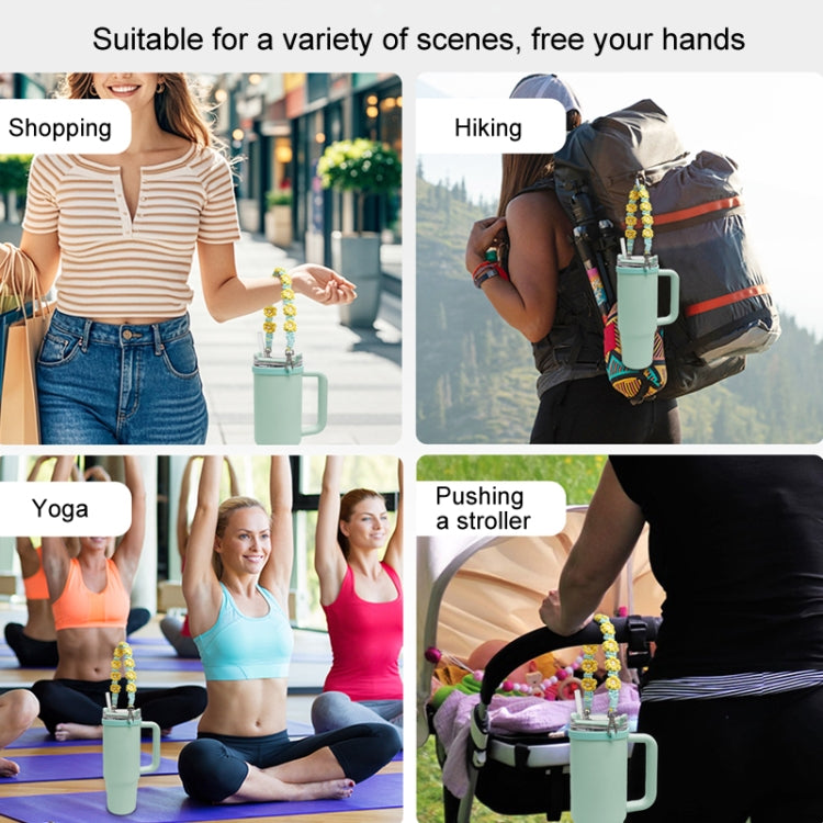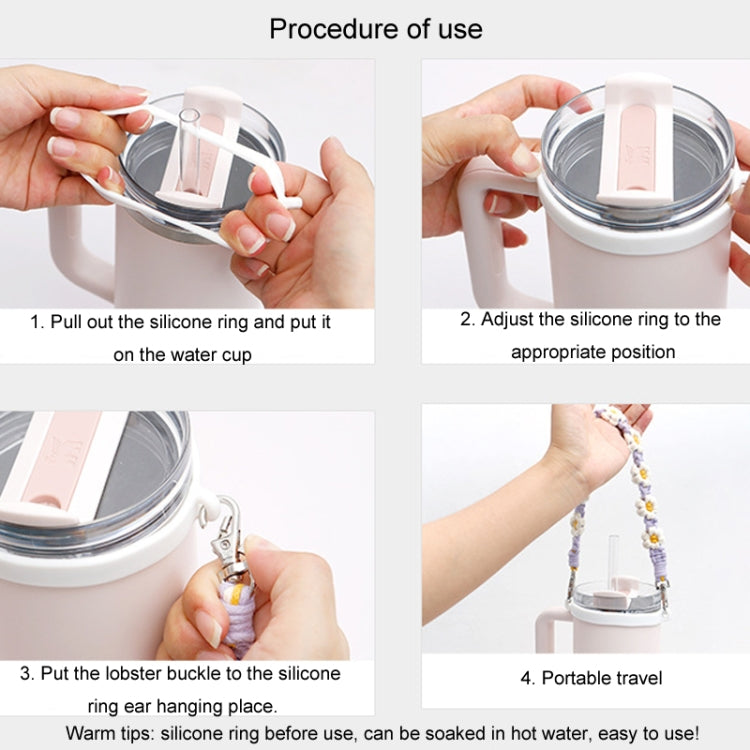 For 16-40oz Stanley Mug Lanyard Silicone Loop Boho Daisy Cute Flower Hand-Woven Mug Cover(Black)