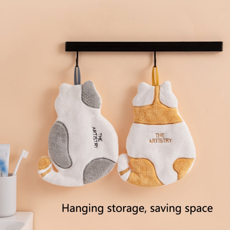 Home Kitchen Bathroom Cute Cat Hand Towel(Yellow)