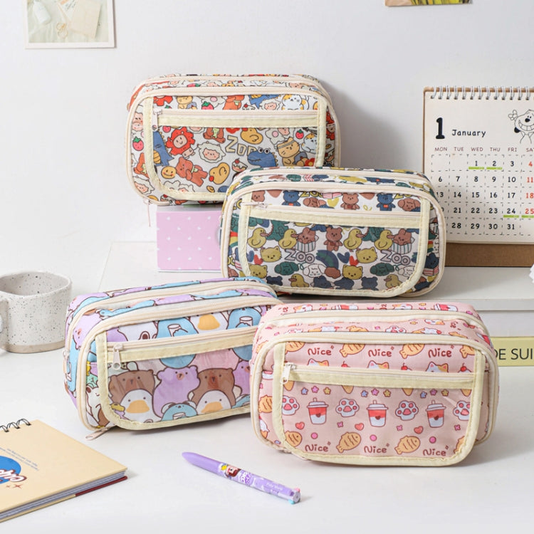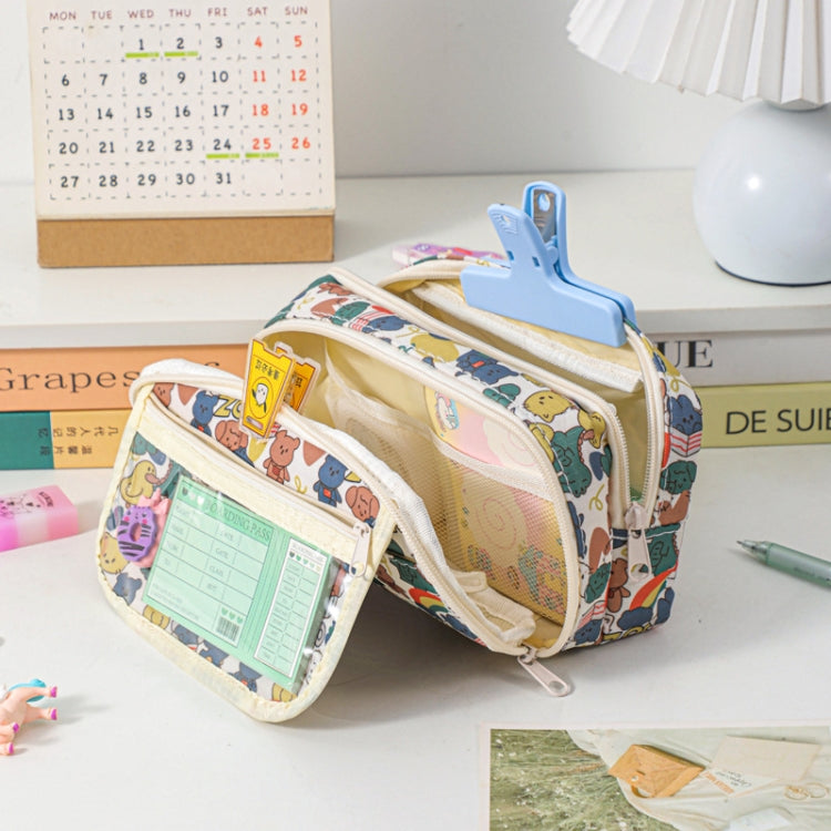 Large Capacity Waterproof Multi-layer Stationery Bag Transparent PVC Pencil Case(Dark Zoo)