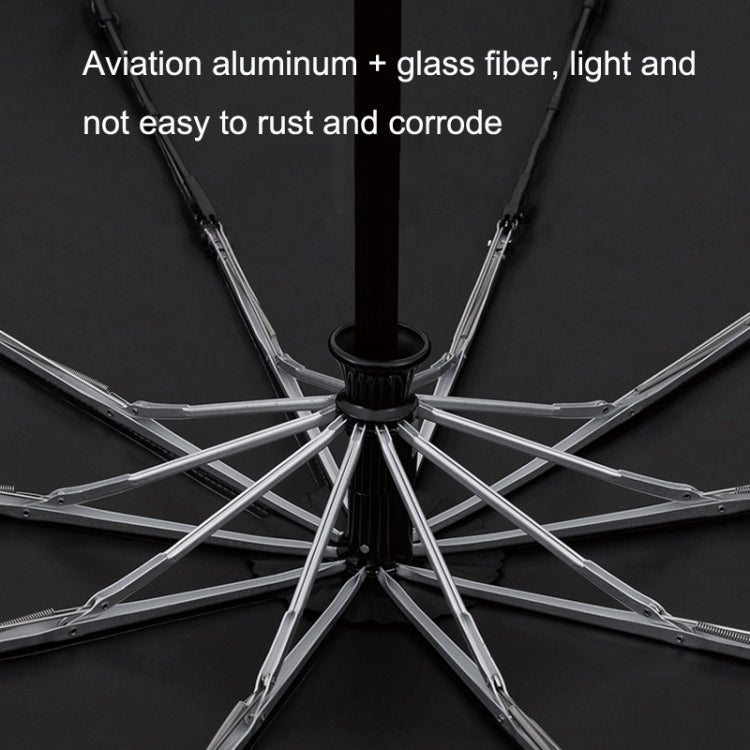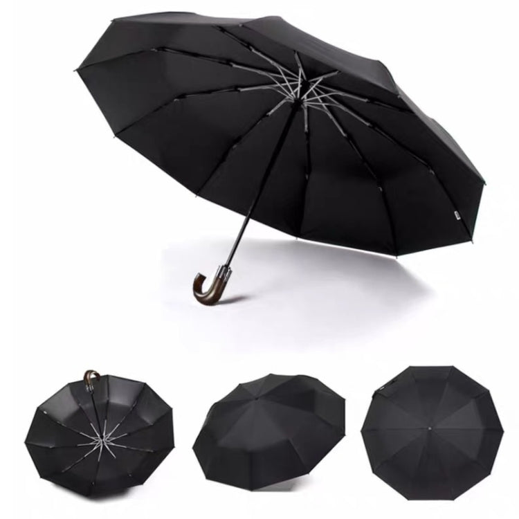 PARACHASE Solid Wood Bending Handle 10 Bone Three Fold Automatic Umbrella(Black)