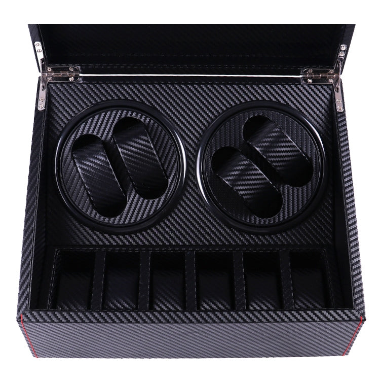PU Leather 4+6 Double-Head Automatic Winding Motor Box Mechanical Watch Rotator, US Plug(Full Carbon Fiber)