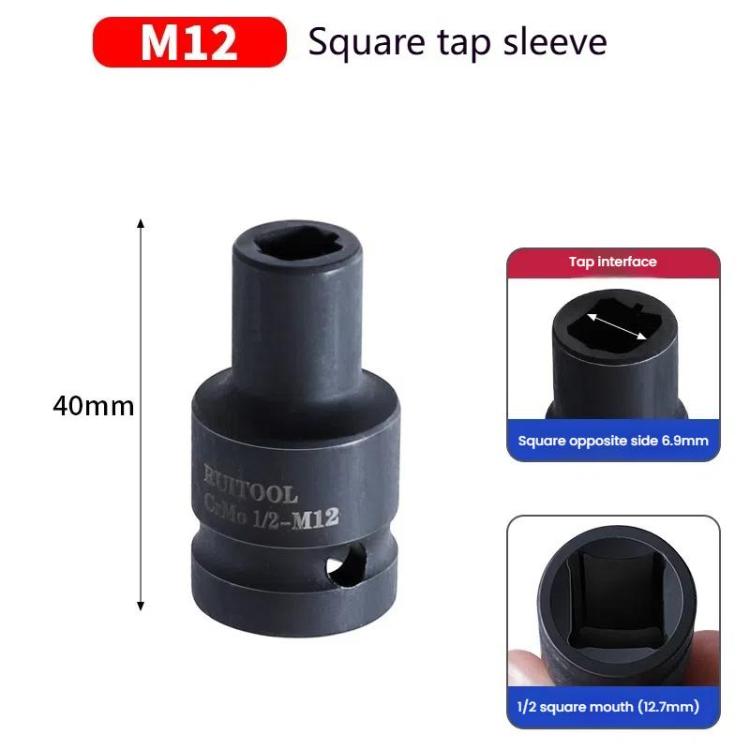 RUITOOL 1/2 inch Tap Socket Pneumatic Wrench Square Socket Inner Quarter Square Hole Wrench Tool, Spec: M12