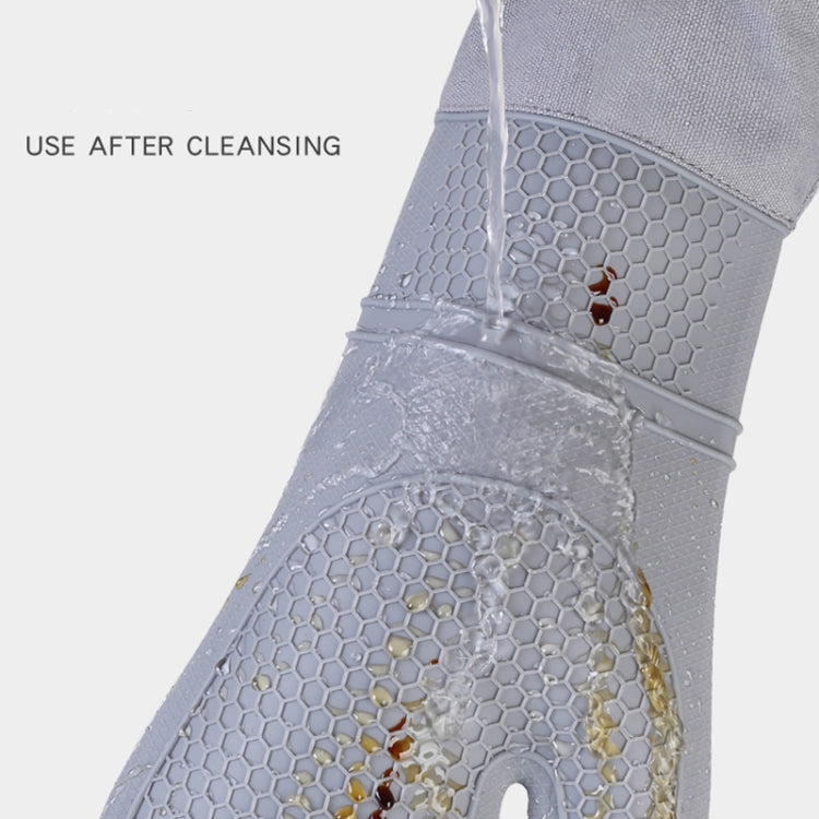 ZYA-426 Longer And Thicker Insulated Gloves Silicone Kitchen Baking Gloves(Black)
