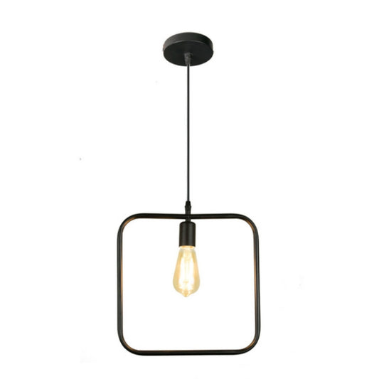 Simple and Creative Wrought Iron Geometric Chandelier Bar Exhibition Hall Clothing Store Restaurant Hotel Decorative Light with Light Bulb(Square)
