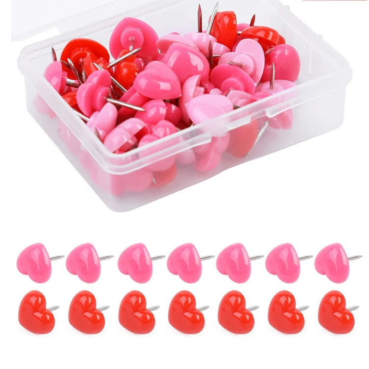 100pcs /Box 10.6x7.8x1.8cm Love Plastic Studs DIY Office School Colorful Pins(Red Pink Mixed Color)