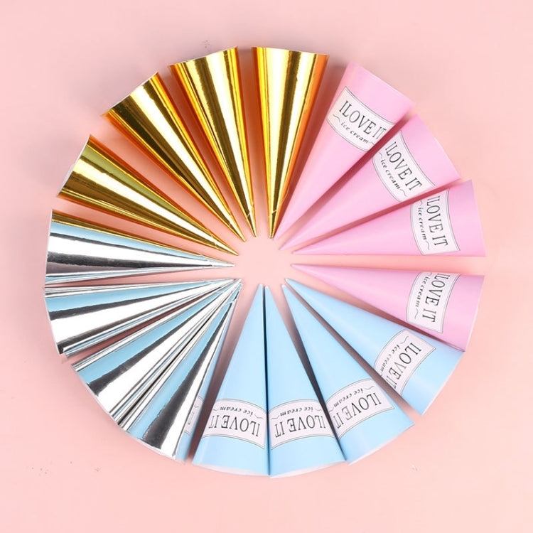 100pcs Disposable Ice Cream Paper Holder Sweet Crispy Tip Bottom Paper(Silver)