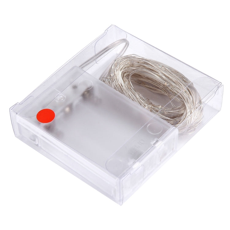10m IP65 Waterproof Silver Wire String Light, 100 LEDs SMD 06033 x AA Batteries Box Fairy Lamp Decorative Light, DC 5V(Red Light)