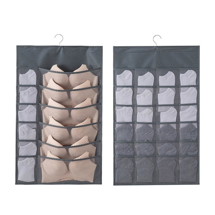 12+24 Grids Underwear Storage Bag Non-woven Double-sided Hanging Storage Bag(Grey)