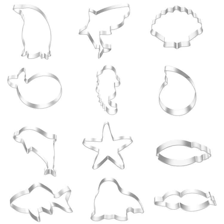 12pcs/set Stainless Steel Biscuits Mold Sea Creature Combination Set Baking DIY Tools