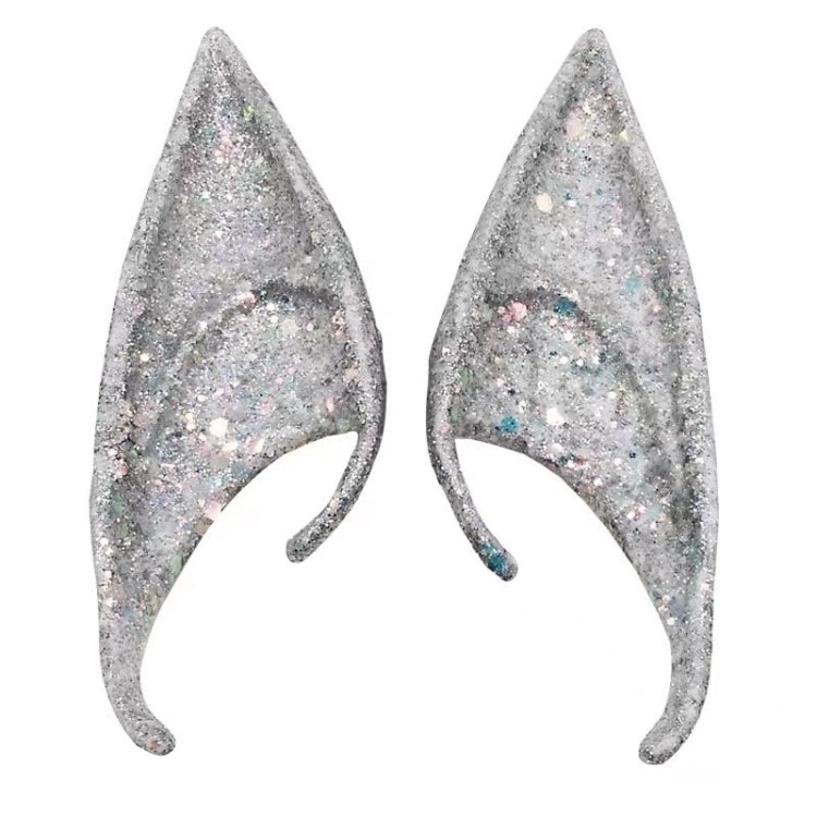 1pair Latex Elf Ears With Glitter Halloween Party Pixie Ears Cosplay Props 12cm Silver