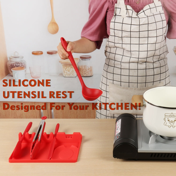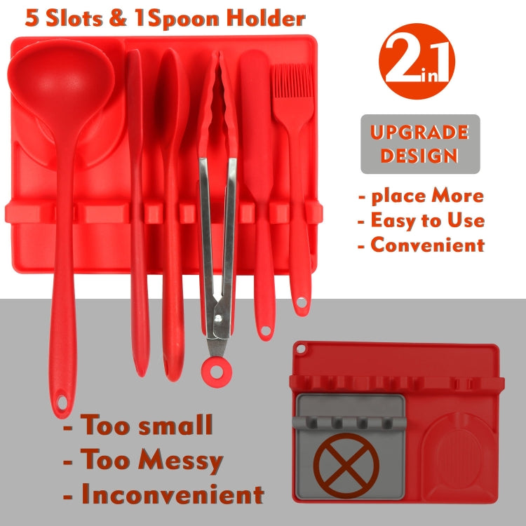 2 in 1 Kitchen Silicone Spoon Holder Shelf Medium (Red)