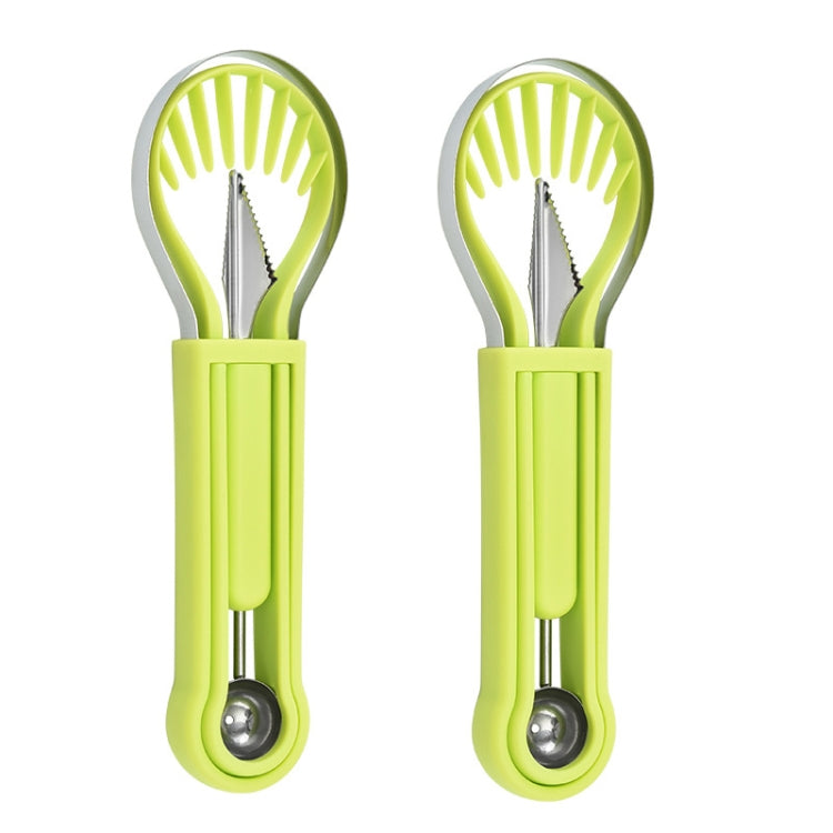 2 PCS 3 In 1 Fruit Digger Fruit Platter Carving Knife(Green)