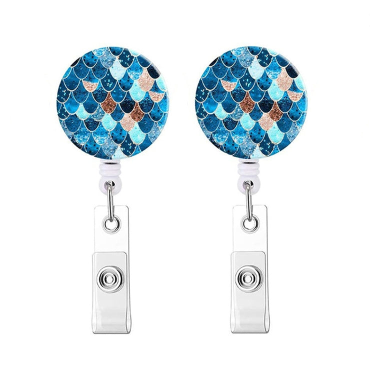 2 PCS Marble Texture Drop Glue Retractable Badge Reel Name Tag Card Badge(Fish Scale)