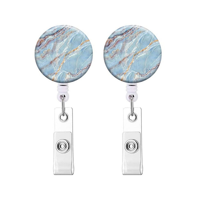 2 PCS Marble Texture Drop Glue Retractable Badge Reel Name Tag Card Badge(Sky Blue)