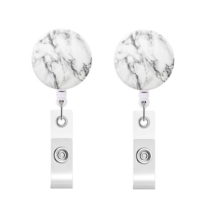 2 PCS Marble Texture Drop Glue Retractable Badge Reel Name Tag Card Badge(White)