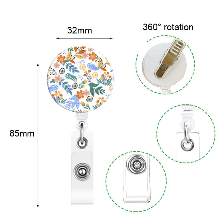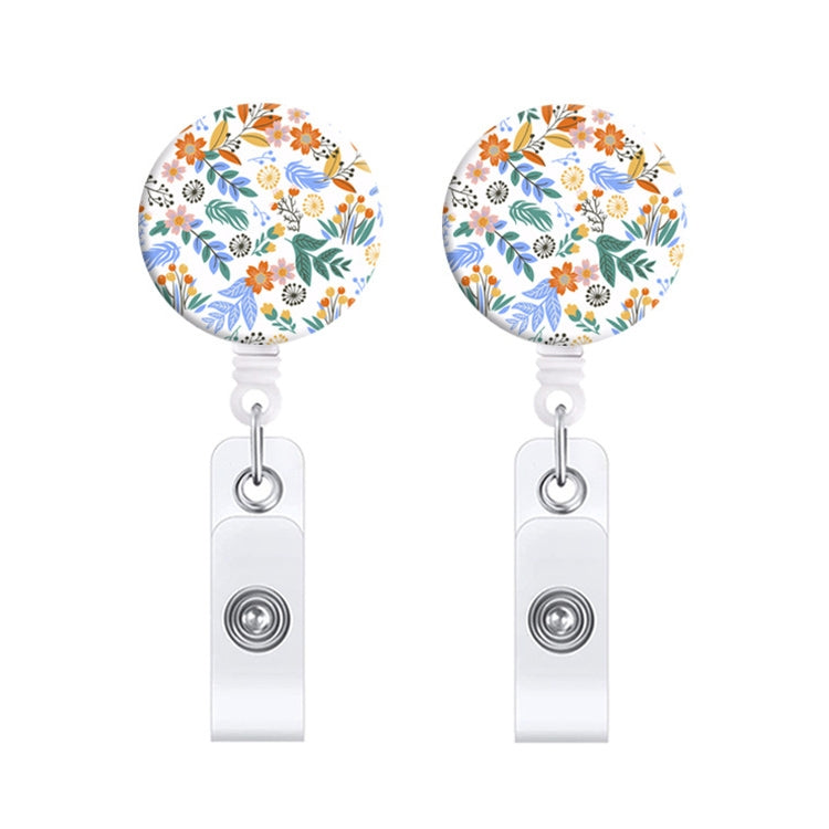 2 PCS Retro Fresh Small Floral Retractable Badge Reel Name Tag Card Badge(No. 1)