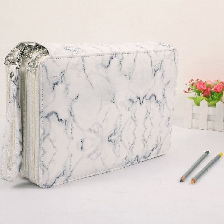 216 Holes 4 Zippers Marble Pattern PU Pencil Case Sketch Filling Stationery Storage Bag(Black)