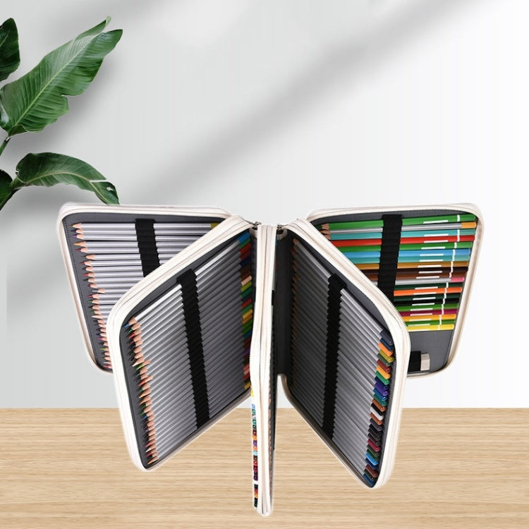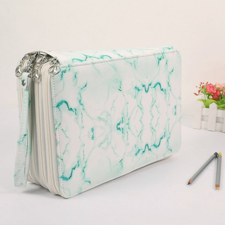 216 Holes 4 Zippers Marble Pattern PU Pencil Case Sketch Filling Stationery Storage Bag(Cyan)