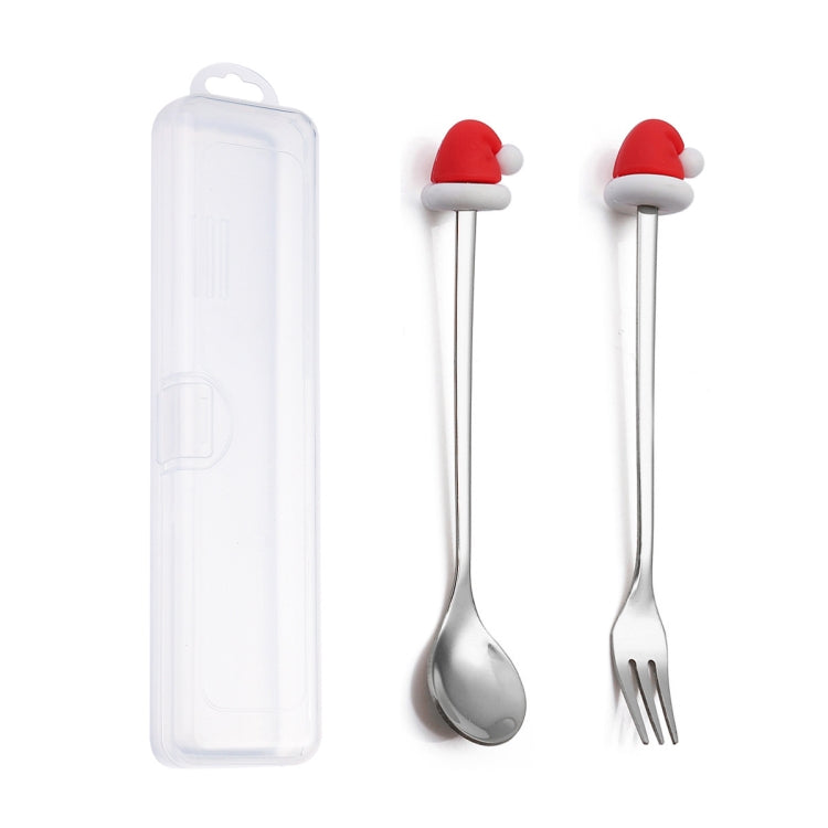 2pcs /Pack Christmas Dessert Fork And Spoon Set Portable Cute Cartoon Tableware, Style: Christmas Hat Silver
