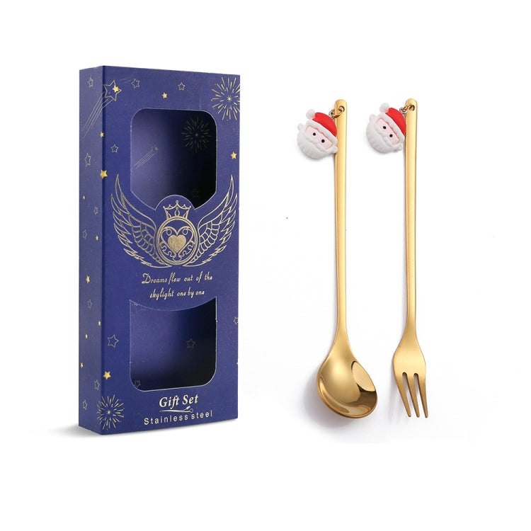 2pcs /Pack Christmas Mixing Spoon Fruit Fork With Pendant Flatware, Style: Elderly (Blue Box)