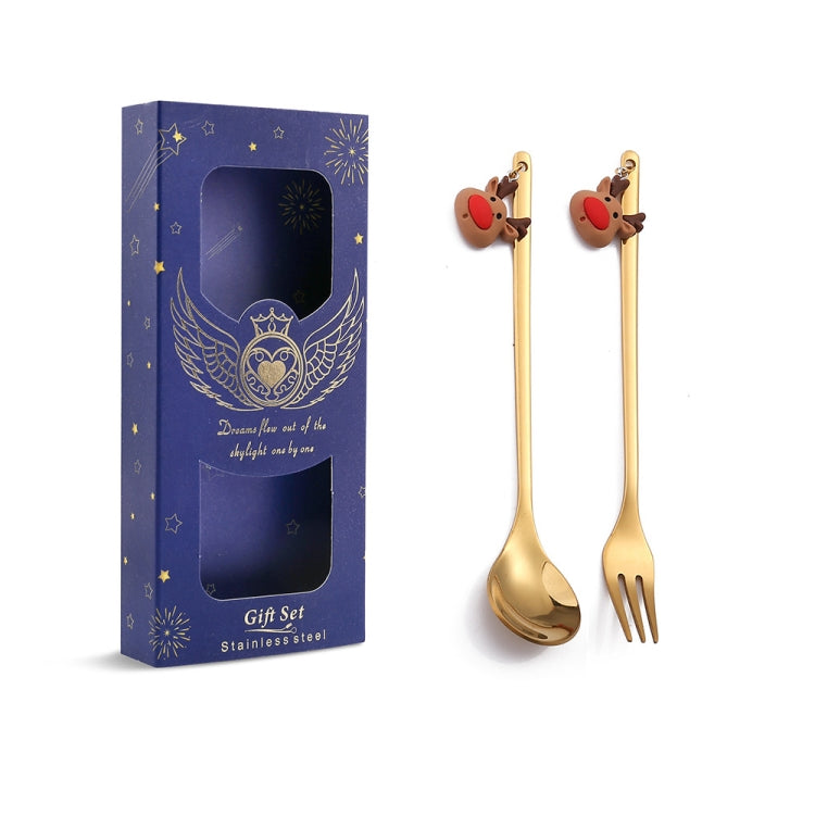 2pcs /Pack Christmas Mixing Spoon Fruit Fork With Pendant Flatware, Style: Elk (Blue Box)