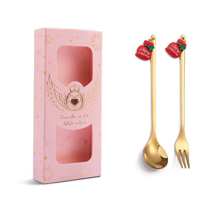 2pcs /Pack Christmas Mixing Spoon Fruit Fork With Pendant Flatware, Style: Fubuka (Pink Box)