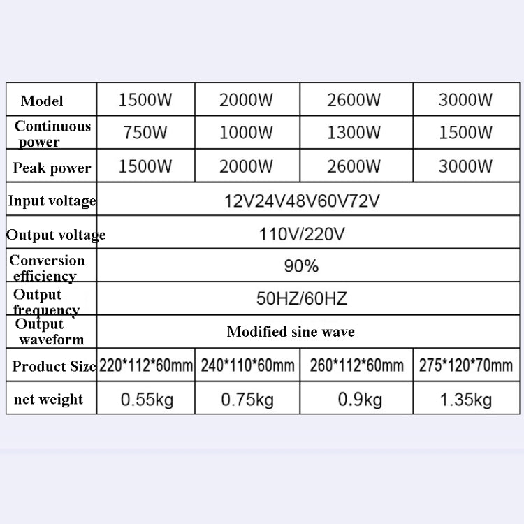 2. Output voltage: 110V/220V