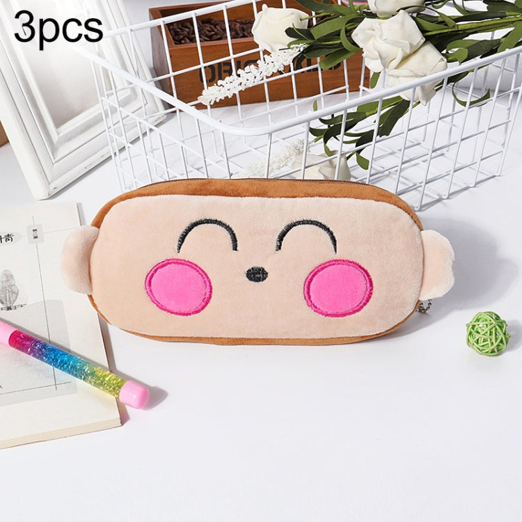 3pcs Children Cute Animal Plush Pencil Bag Stationery Storage Bag, Color: Hip-hop Monkey