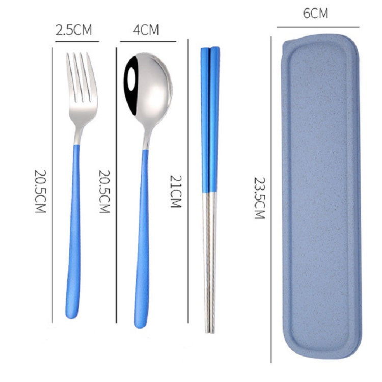 3pcs / Set Portable Stainless Steel Tableware Creative Set Chopsticks Spoon Fork Gift, Color:Blue
