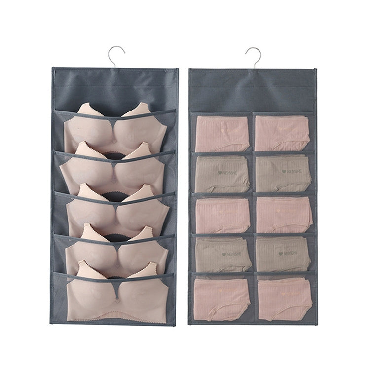 5+10 Grids Underwear Storage Bag Non-woven Double-sided Hanging Storage Bag(Grey)