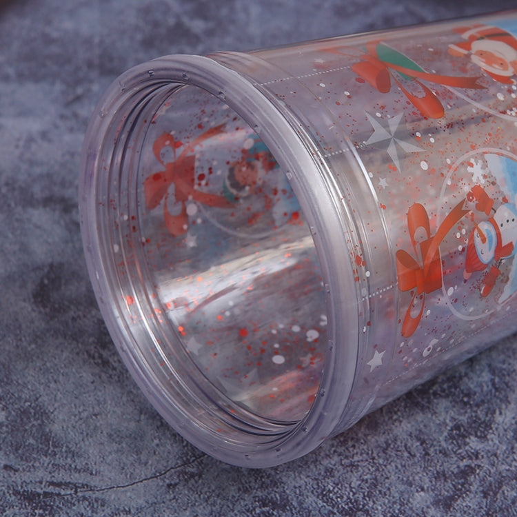 500ml Santa Claus Cartoon Portable Plastic Cup Double Micro Landscape Juice Cup(Style 3)